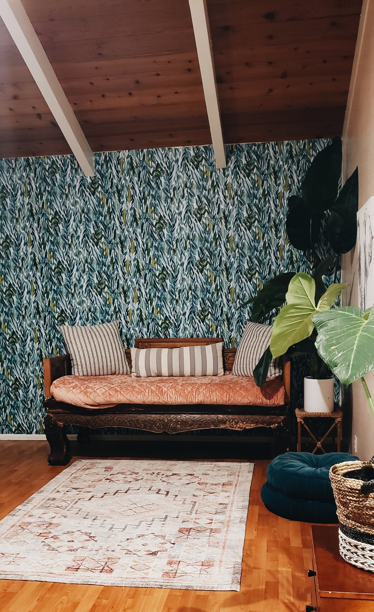 Escape to the Wild in this Bold Bohemian Jungle Pad! Hãy để trái tim hoang dã của bạn đi lang thang tự do - sau đó trở lại với sự thoải mái. Nơi ẩn náu trong rừng này có tất cả các tiện nghi thiết yếu: điều hòa nhiệt độ, trần nhà hình vòm, giường queen có đầu bọt, tầm nhìn ra một phần đại dương/vườn, không gian làm việc, bếp nhỏ và bồn tắm để thư giãn. Thưởng thức trái cây tươi theo mùa từ chỗ ở. Chúng tôi vệ sinh kỹ lưỡng bằng cách sử dụng các sản phẩm kháng khuẩn và các phương pháp hay nhất. Trong khi giường ban ngày ấm cúng trên biển và nệm hơi chứa thêm khách hoặc trẻ em - nhiều gia đình hạnh phúc đã ở lại.