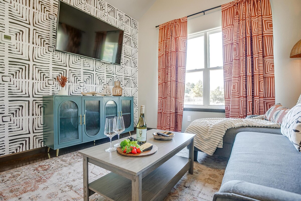 Tận hưởng kỳ nghỉ tại nhà khách 1 phòng ngủ riêng tư này, nằm sau ngôi nhà chính với lối xe vào riêng và không gian ngoài trời yên bình. Bên trong, bạn sẽ thấy phòng khách ấm cúng, nhà bếp đầy đủ tiện nghi, phòng ngủ có giường cỡ king và cửa sổ sáng sủa ở khắp mọi nơi. Thư giãn bên ngoài với bàn có hố đốt lửa, bếp nướng và chỗ ngồi trên hiên nhà, xung quanh là những cây thông cao. Hoàn hảo cho các cặp đôi, những người đi du lịch một mình hoặc một kỳ nghỉ yên tĩnh, chỉ cách Quảng trường Lịch sử Granbury một quãng lái xe ngắn!