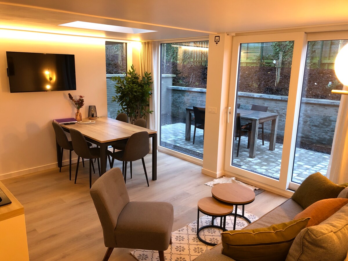 Tại công viên thành phố, ở trung tâm, chúng tôi đã xây dựng một ngôi nhà một tầng, trung hòa năng lượng, với nhà để xe đạp an toàn, sân, vườn và bãi đậu xe riêng. Thông gió: hệ thống D Phòng khách rộng rãi và 2 phòng ngủ với cách bố trí linh hoạt (giường đơn hoặc giường đôi). Sofa giường trong phòng khách cho 2 người. Khám phá Vlaamse Ardennen, với các sườn dốc Ronde Van Vlaanderen và mạng lưới đi bộ rộng lớn. Ga tàu cách 600 m: tàu đến Ghent (30 phút), Brussels (60 phút), Bruges (60 phút). Tàu trực tiếp từ sân bay Bxl