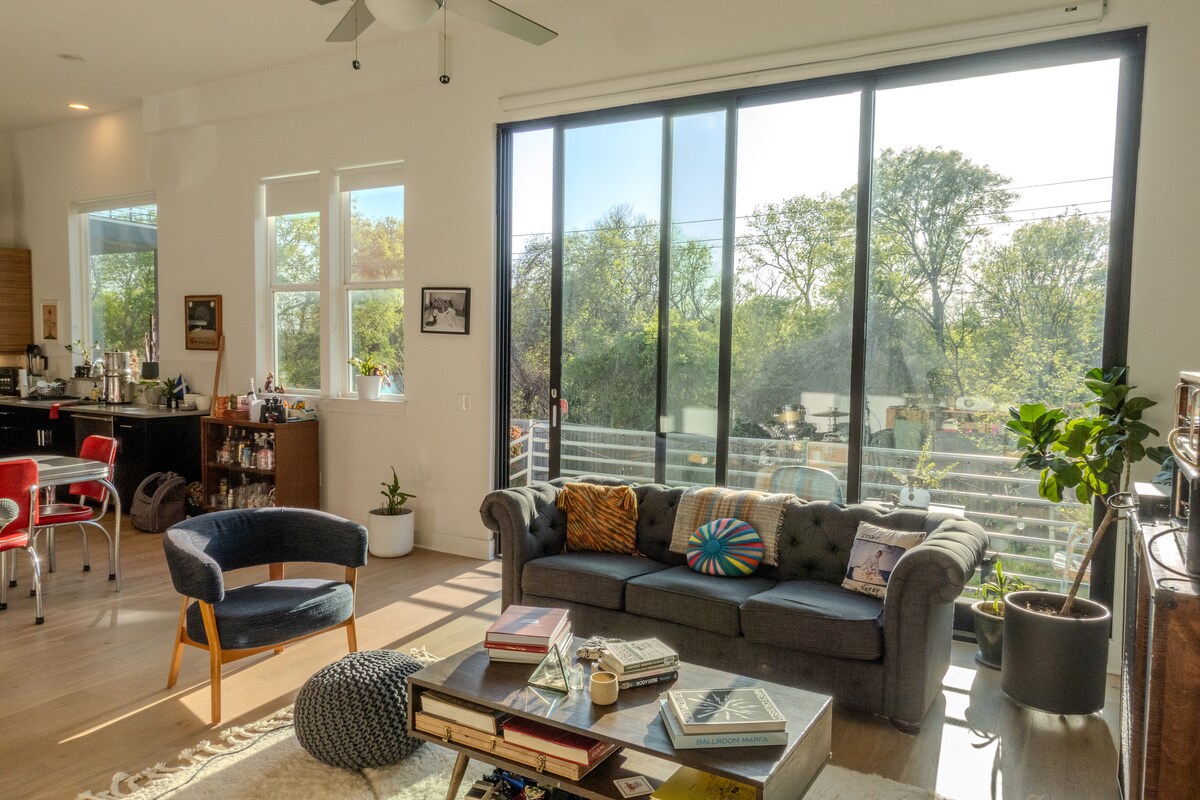 Studio của chúng tôi là một không gian mới, sáng sủa, sạch sẽ và đặc biệt trong các hàng cây tách biệt với nhà chính của chúng tôi để đảm bảo sự riêng tư. Chúng tôi cách trung tâm thành phố 4,5 dặm và cách sân bay 6 dặm. Chúng tôi ở bên cạnh sông Colorado trong một khu phố được giữ gìn tốt với đường mòn đi bộ đường dài và xe đạp bên bờ sông và Đường mòn Walnut Creek 7 dặm tuyệt đẹp được lát đá. Chúng tôi đã dành rất nhiều tình yêu cho không gian này và thực sự hy vọng bạn sẽ thích nó! Vui lòng liên hệ với chúng tôi để yêu cầu thời gian ở dài hạn hơn. Chúng tôi có thể thương lượng mức giá theo tuần