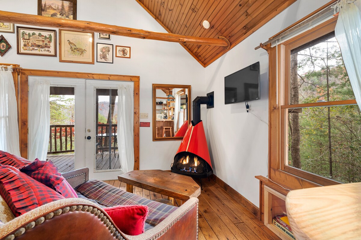Khung cảnh riêng bên bờ sông, nhưng đi bộ một đoạn ngắn đến The Appalachian Trail, các cửa hàng trung tâm thành phố, nhà hàng, nhà máy bia và nhạc sống. Cabin Otter ấm cúng có bếp đầy đủ tiện nghi, khu vực sinh hoạt/ăn uống thoải mái, giường cỡ king trong phòng ngủ riêng biệt và phòng tắm lớn với vòi sen lát gạch và bồn ngâm Nhật Bản độc lập. Thiết kế cabin tròn với tầm nhìn bao quanh đưa bạn đến trung tâm của thiên nhiên.