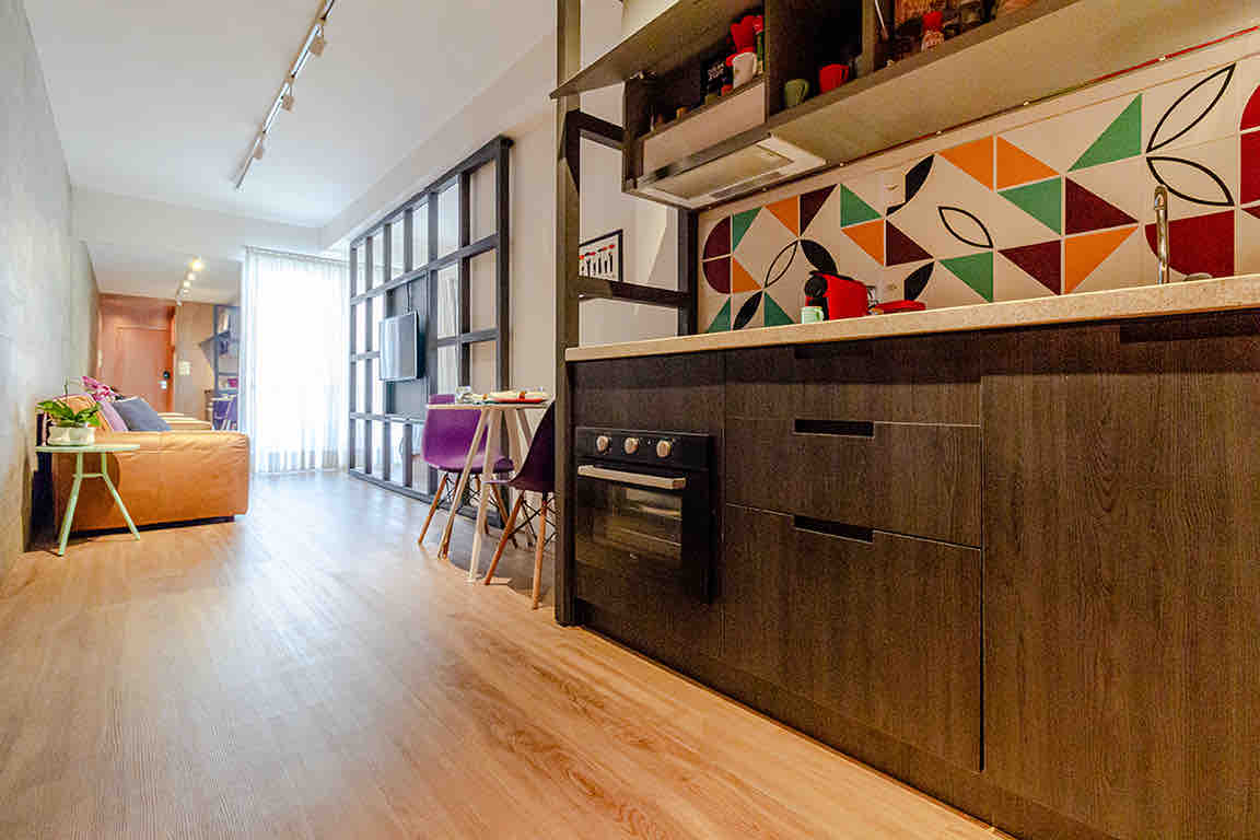Studio "Senses Vila Madalena" có ban công xanh