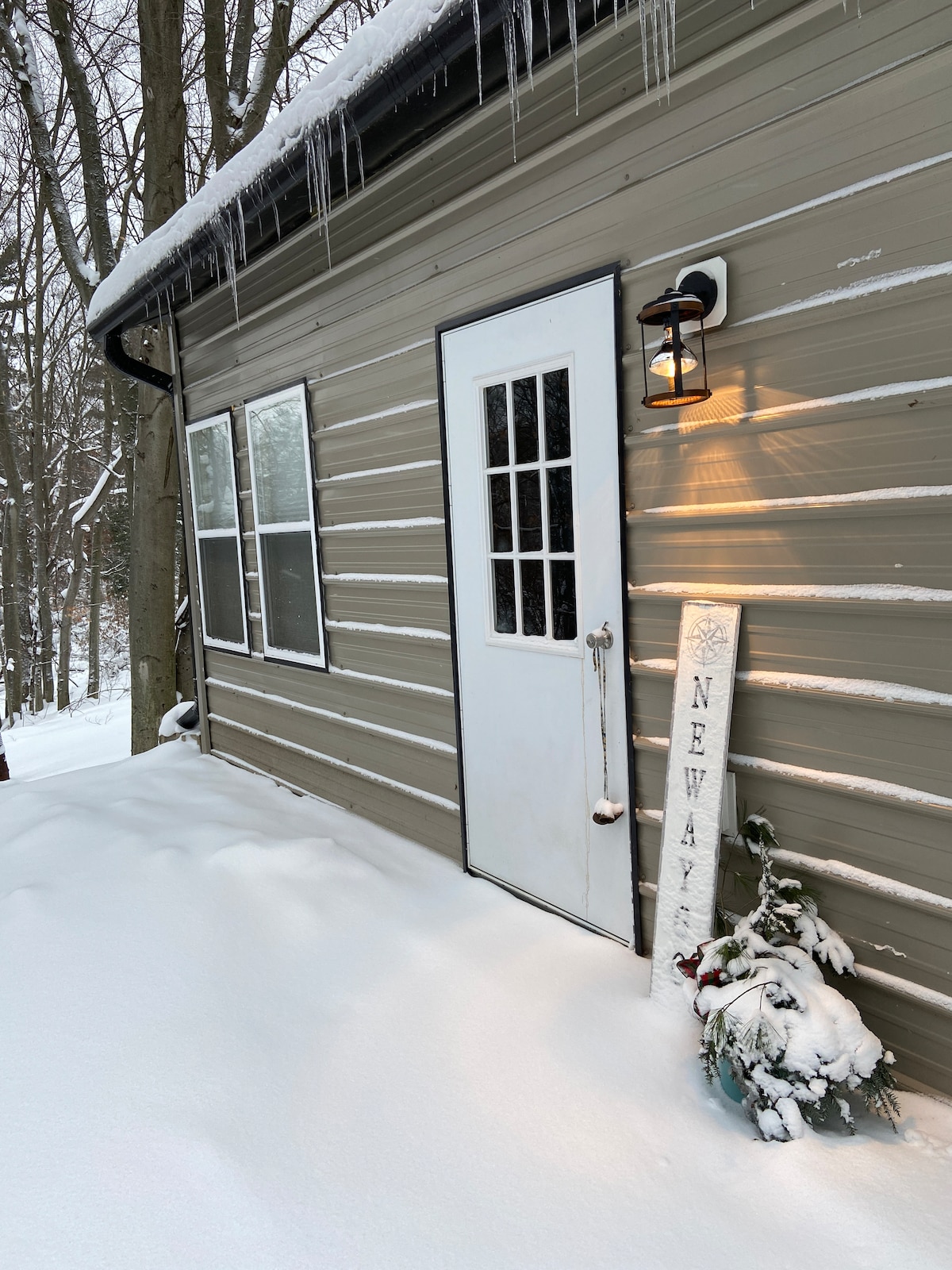 This cozy lofted cabin overlooks private ponds. In the winter, enjoy the peaceful serenity of a true winter paradise or if staying in the warmer months, enjoy the newly renovated firepit area! Fiber Internet Less than 8 miles from US131 Less than 3 miles from the Dragon Trail 15min from Big Rapids Close to Hardy Dam, Croton Dam, snowmobile trails, hiking trails and many lakes for fishing or leisure. No Cats Allowed. Pet Fee is REQUIRED for one dog. 2 Dogs max unless discussed with host prior.