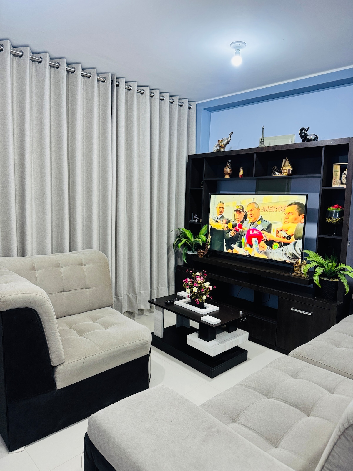 Consulta por nuestro check-in flexible (según disponibilidad) para que puedas acceder al alojamiento a la hora que prefieras. ¡Disfruta de una estadía cómoda y segura en este elegante departamento con una impresionante vista panorámica de la ciudad! Ubicado a solo 7 minutos del centro de Huancayo y las principales universidades, y a dos cuadras del centro comercial MAKRO.