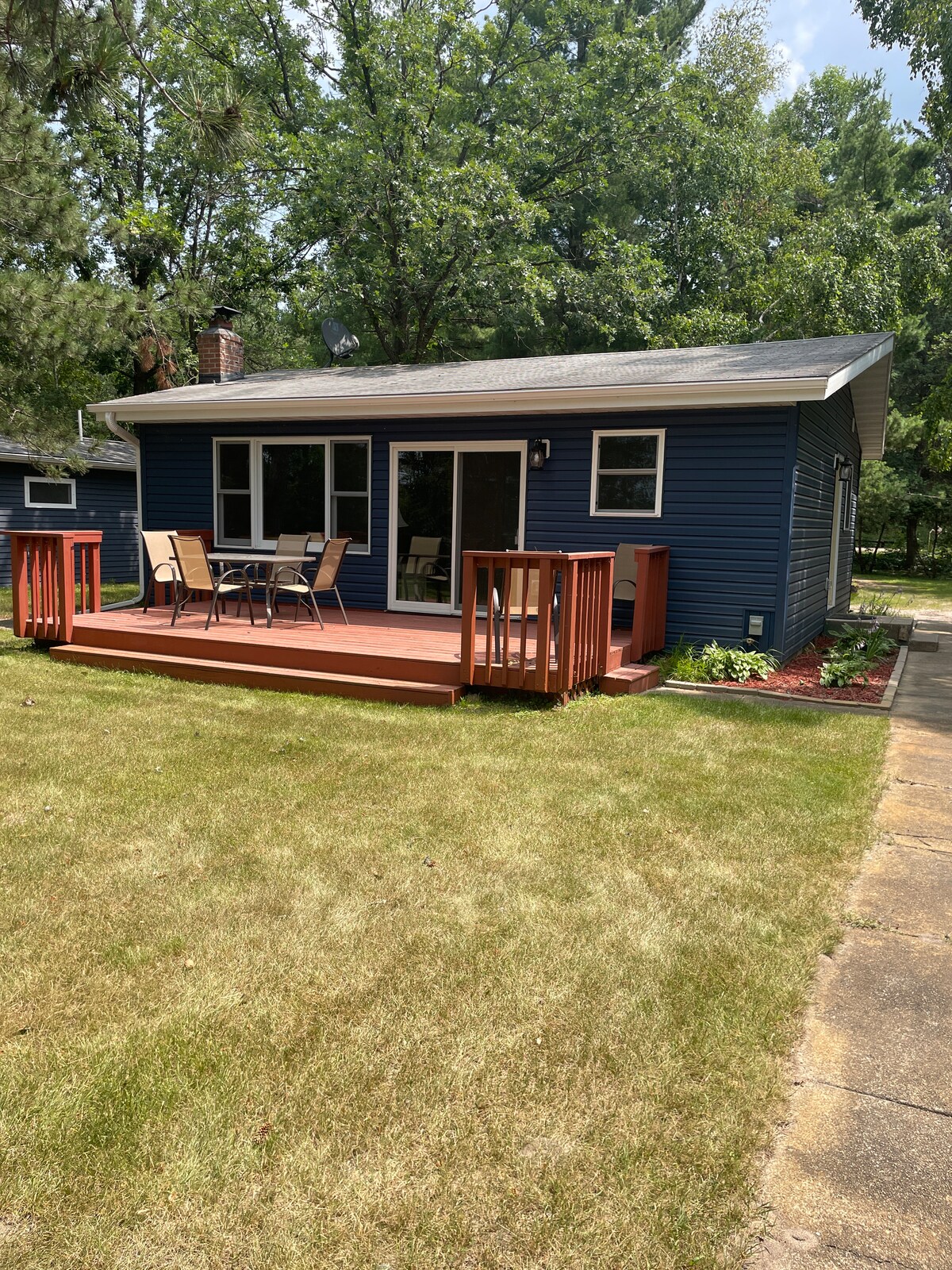 Open floor plan to allow for ease of stay with a big sectional couch for plenty of seating and a large dining room table. Offers 3 queen beds. After a day on the beach for a swim, picnic or fishing off the pier, you can retreat to your private backyard that has a patio set, charcoal grill and bonfire pit. This vacation home is available all year. Itaska Headwaters is 30 min, Blueberry Pines Golf Course 3 mi. Local eateries-Cottage House, Kahvila, Bakery, and Blueberry Pines Restaurant Enjoy!
