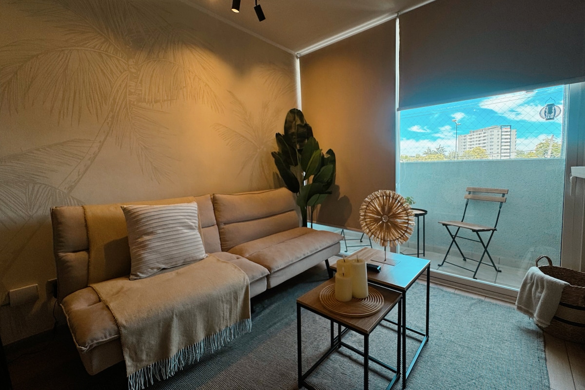 Cozily designed and functional, this 37 m² studio offers a unique open-plan space with 1 bedroom featuring a King-size bed and closet, 1 fully equipped kitchen, 1 full bathroom, 1 living area, Smart TV, Wi-Fi, and 1 parking space. Daily housekeeping and a 24-hour front desk are included, just like a hotel. You’ll have access to shared spaces such as a gym, coworking area, restaurant and panoramic rooftop. Located in El Golf, just steps from the metro, restaurants, shops, and business centers.