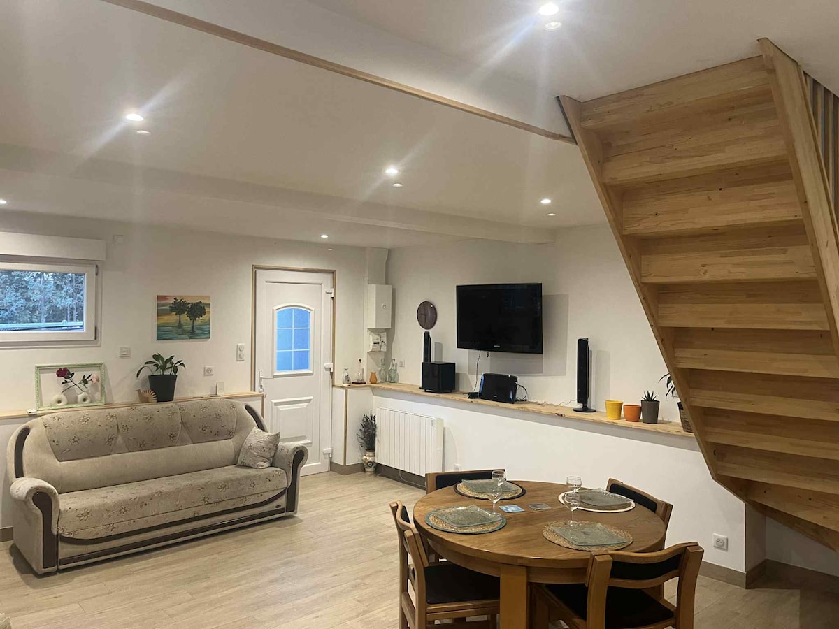 Tận hưởng đặc điểm của căn hộ 44 m2 rộng rãi trên lầu của ngôi nhà đá xinh đẹp của tôi. Được cải tạo gần đây, phòng này được trang trí theo phong cách sạch sẽ. Lối vào✓ riêng Giường cỡ ✓ King (180/200) được làm khi đến ✓ Phòng tắm riêng Nhà vệ sinh✓ riêng Khăn ✓ tắm được cung cấp ✓ Wi-Fi Tivi ✓ thông minh ✓ Khu vực phòng chờ ✓ Tủ lạnh mini ✓ Máy pha cà phê Ấm đun nước ✓ nóng. ✓ Mành chắn sáng ✓ Chỗ đỗ xe Bạn nghĩ sao về việc mua bảo vệ môi trường cho một đêm trở lên? 🌳