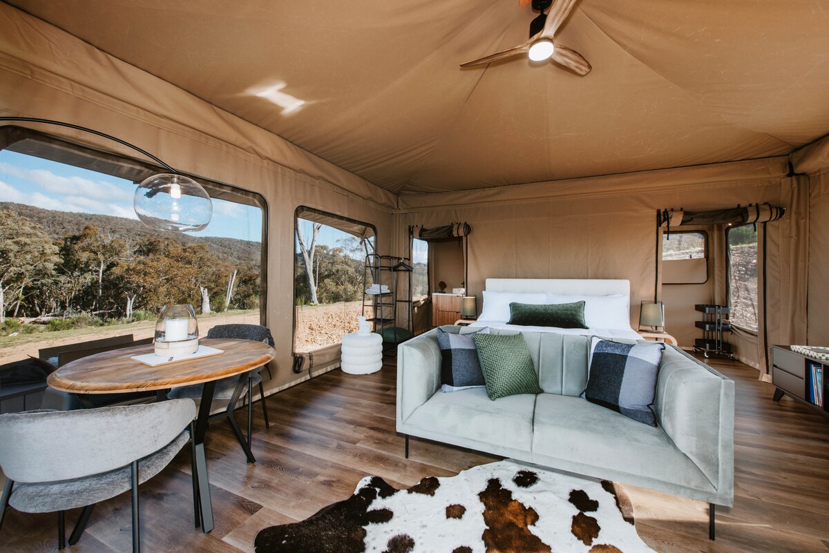 Tận hưởng khung cảnh đáng yêu của địa điểm lãng mạn này giữa thiên nhiên. "Lều" sang trọng của chúng tôi rộng rãi và thoải mái cho trải nghiệm glamping cuối cùng. Nằm giữa vườn nho và vườn anh đào, bạn sẽ ở một vị trí đắc địa để thư giãn trong tự nhiên trong tự nhiên trong khi khám phá vùng Mudgee. Chúng tôi có 5 lều ở chỗ ở. Mỗi phòng nằm trong phạm vi 50m của nhau và hướng về phía tây để bạn có thể tận hưởng khung cảnh ngoạn mục của mặt trời buổi chiều và bao gồm các khung cảnh không bị gián đoạn của chỗ ở.