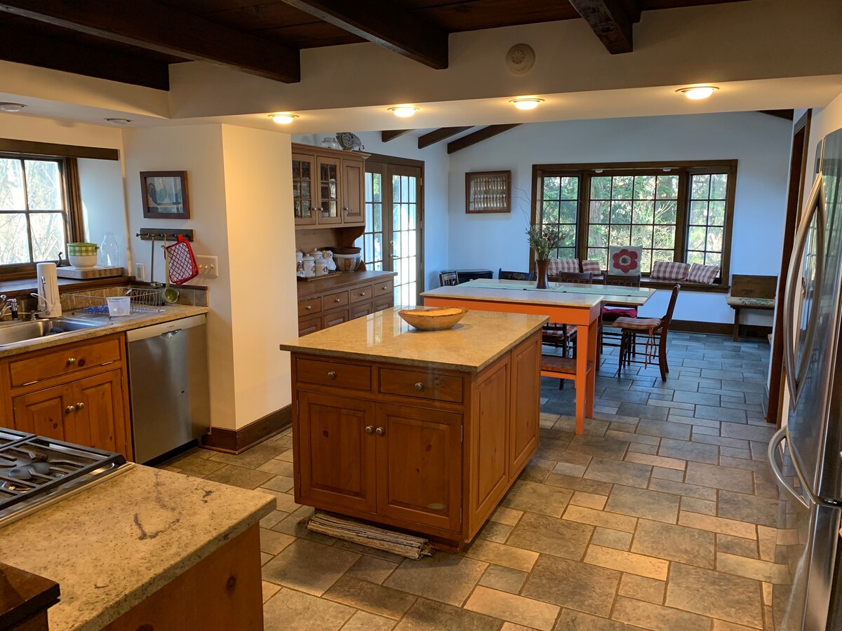 Nằm trên một đỉnh đồi được bao quanh bởi một con lạch và 5 mẫu rừng, ngôi nhà yên bình này đã được cải tạo hoàn toàn và sẵn sàng để bạn tận hưởng. Thư giãn và nhấm nháp cà phê buổi sáng của bạn trên boong khi bạn nghe những con chim trong khung cảnh bình dị này. Nằm cách Delaware Towpath xinh đẹp chỉ vài phút, để đi xe đạp và đi bộ đường dài. Lambertville và New Hope, cả hai đều được biết đến với nhiều lựa chọn ăn uống, nhạc sống, phòng trưng bày nghệ thuật và đồ cổ, cách đó chưa đầy 10 phút lái xe.