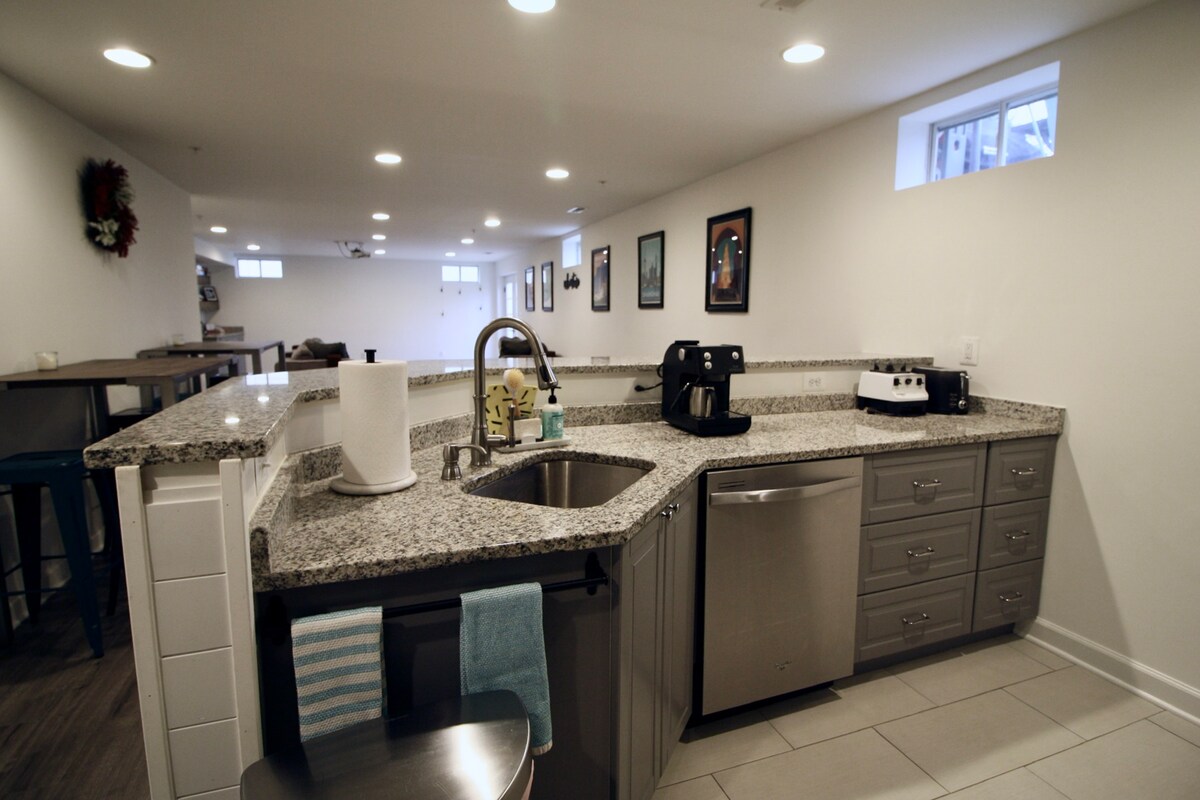 Phòng phụ có lối đi riêng này được định nghĩa tốt hơn là một căn hộ nhỏ gắn liền với nhà; lối vào, phòng tắm, nhà bếp và bãi đậu xe miễn phí của riêng bạn! Giường Queen, ga trải giường sạch, khăn tắm, bàn là, cầu là, chậu bếp, bàn ăn, TV, v.v. Nó nhỏ nhưng có tất cả các tiện nghi cần thiết để sống. Nếu tìm kiếm một không gian rộng lớn, đây sẽ không phải là nó. Tốt cho người độc thân/cặp đôi đi du lịch bằng DMV với NGÂN SÁCH HẠN HẸP! -20 phút đi bộ đến tàu điện ngầm; ngoài biên giới DC, 18 phút lái xe đến trung tâm thành phố.