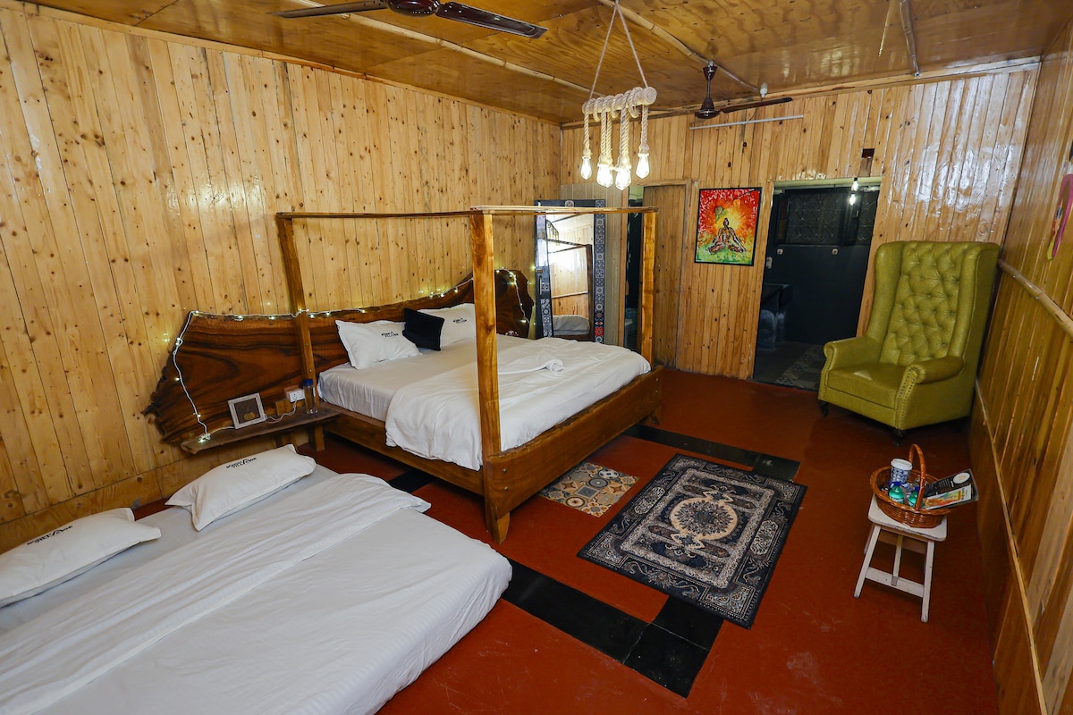 Experience a peaceful stay in this 1 BHK house—ideal for families and small groups. ✨ The Space Compact living hall with a 12" California king memory-foam floor mattress and a 2-seater recliner sofa. Functional kitchen with UV + RO Aquaguard. Master bedroom: Queen-size memory-foam mattress, large wardrobes, attached bathroom and wash basin. One separate (detached) bathroom. 6-seater dining table with wash basin. Non-AC home in winters; air cooler can be provided on request.