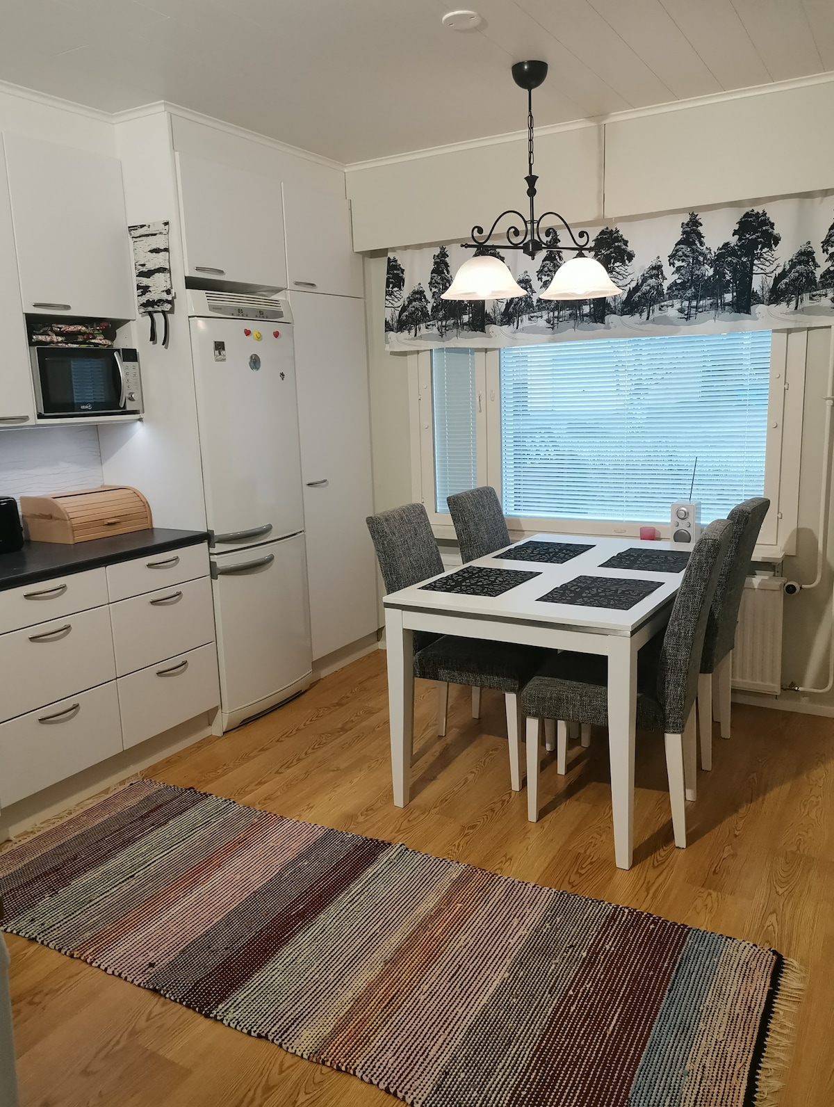 Căn hộ hai phòng ngủ có vị trí tốt với phòng xông hơi khô. Các đường trượt tuyết có đèn chiếu sáng và đường mòn ngoài trời ở gần đó. Bạn có thể giặt đồ thể thao bằng máy giặt và sấy khô bằng máy sấy. Sau khi tập luyện, bạn có thể thư giãn trong phòng xông hơi khô. Bạn có thể tìm thấy mái che cho xe của mình có phích cắm sưởi ấm. Không thể sạc xe điện hoặc xe lai ở đây. Điểm sạc gần nhất nằm ở sân của siêu thị S-Market gần đó. NGƯỜI THUÊ CĂN HỘ CHỊU TRÁCH NHIỆM VỀ VIỆC VỆ SINH CUỐI CÙNG CỦA CĂN HỘ. VUI LÒNG MANG THEO KHĂN TRẢI GIƯỜNG VÀ KHĂN TẮM RIÊNG CỦA BẠN.