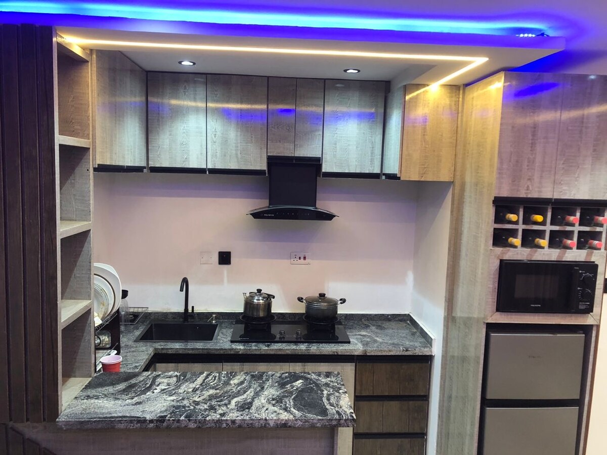 Our stylish 2-bedroom apartment is designed for comfort, convenience, and relaxation. Perfect for families, groups, or business travelers, this fully furnished space offers: Two spacious bedrooms with cozy beds and quality linen Bright living area with smart TV and fast Wi-Fi for work or entertainment Fully fitted kitchen with modern appliances, including a fridge, microwave, and washing machine 24/7 electricity & security, On-site housekeeping to keep everything spotless