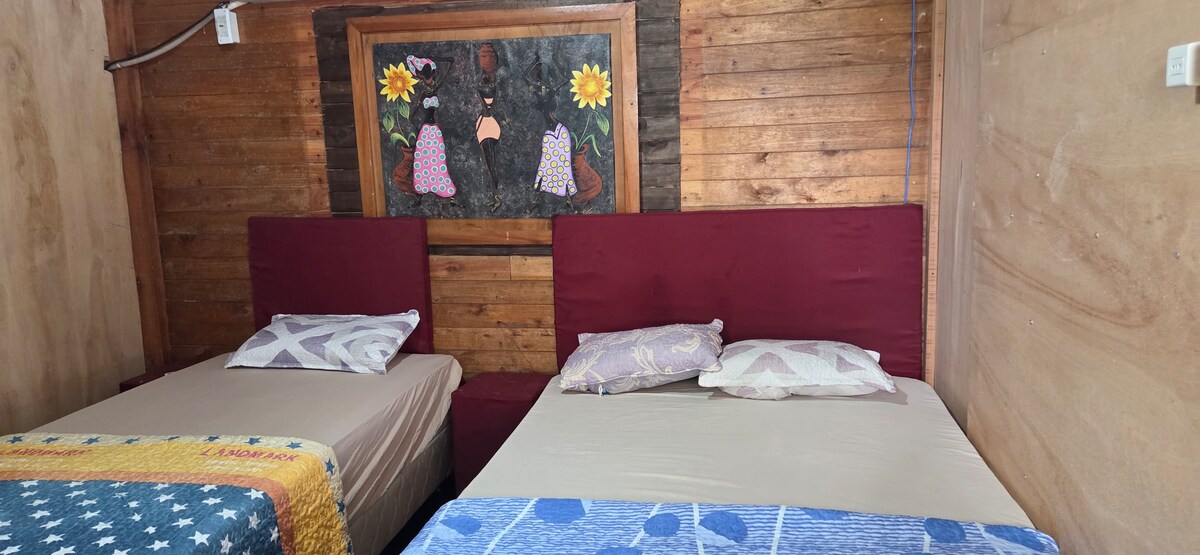 habitación triple, baño privado frente a la playa