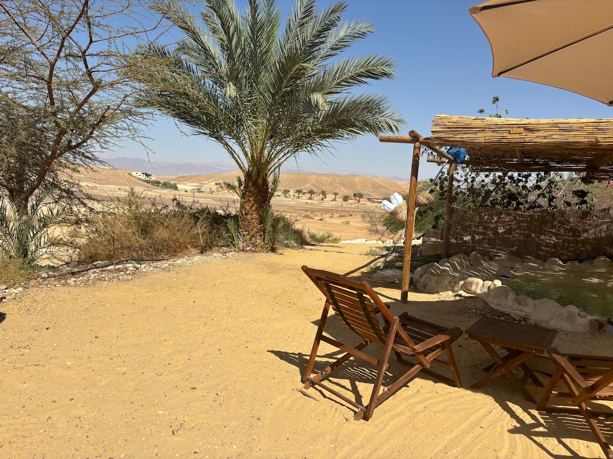 Một căn hộ sa mạc xinh đẹp, mới mẻ và ngọt ngào với lối vào riêng biệt, sân riêng và ấm cúng với pergola, khu vực ngồi ấm cúng và giường thảo mộc. Tzivit là hai phòng ấm cúng và đẹp. Một là phòng ngủ có thạch cao khoáng sản và cửa sổ lớn nhìn ra sân riêng và phòng khách còn lại và nhà bếp cũng có hai cửa sổ và nó mở ra sân. Căn hộ được lót bằng một sàn đá đẹp và được trang trí bằng cửa sổ màu xanh mòng két. Nhà vệ sinh ấm cúng và vòi sen được nuông chiều. Căn hộ nằm gần làng thủ công Tzukim và trong khoảng cách đi bộ đến các lối đi yên tĩnh trên sa mạc. Vị trí của chúng tôi cho phép một kỳ nghỉ độc đáo và yên bình nhưng cũng là lựa chọn để đến Eilat cho một chuyến đi trong ngày