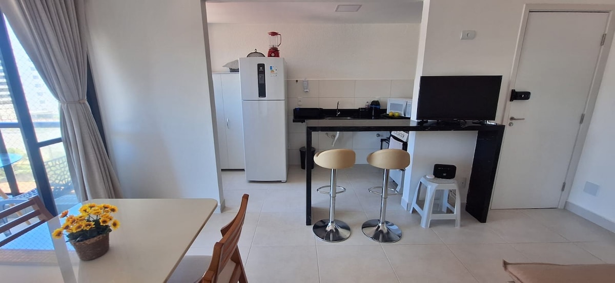 Thư giãn cùng cả gia đình trong chỗ ở yên tĩnh này bên cạnh bãi biển nổi tiếng nhất của Ilhéus. Tại đây bạn có thể tận hưởng khu vực giải trí trong hồ bơi đẹp, phòng xông hơi, trung tâm thể dục, sân thể thao, sân chơi trẻ em và khu vực nướng thịt. Chỗ ở có điều hòa không khí trong cả hai phòng ngủ, một trong số đó là phòng tắm khép kín, ga trải giường, khăn tắm và bếp đầy đủ tiện nghi. Bạn cũng có quyền truy cập vào Netflix và Wi-Fi
