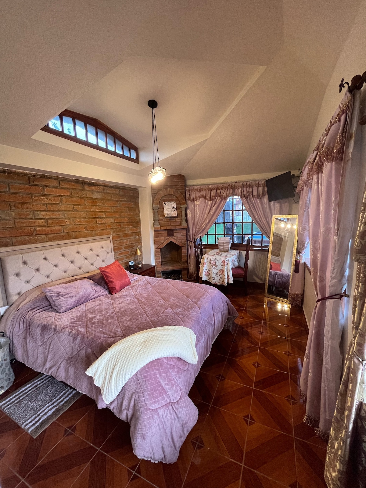 Thực sự thư giãn trong không gian yên tĩnh, đầy phong cách này. Tọa lạc tại một vùng nông thôn xinh đẹp gần thành phố Cayambe, Ecuador (cộng đồng Pesillo). Được bao quanh bởi các điểm tham quan thiên nhiên như hồ (chèo thuyền và tham quan) và núi (leo núi và đi bộ đường dài). Ngoài ra, 45 phút lái xe từ Otavalo (thủ công mỹ nghệ địa phương) nổi tiếng, San Antonio de Ibarra (nghệ thuật gỗ), Cotacachi (đồ da) LƯU Ý: Chỗ ở nằm ngay bên cạnh ngôi nhà chính nơi chủ nhà sinh sống. Nếu bạn không phải là người hâm mộ chó, chỉ cần cho chủ nhà biết.