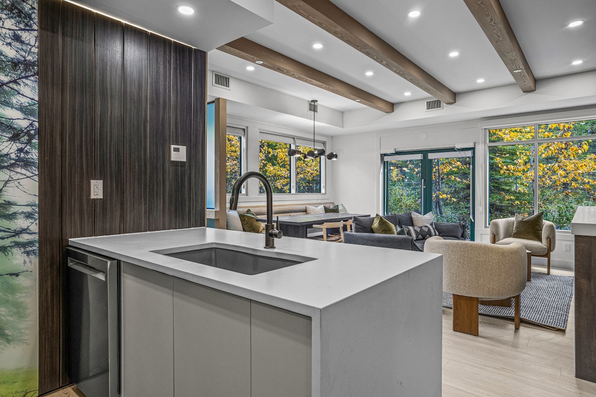 Experience unparalleled luxury in our newly built, air-conditioned one-story chalet. Featuring a spacious deck, a fully equipped custom kitchen, and a large, stylish bathroom, this retreat offers the perfect blend of comfort and sophistication. Enjoy the cozy bedroom adorned with 11-foot ceilings, creating an inviting atmosphere. This distinctive property boasts a unique style that sets it apart, making it an exceptional choice for your getaway.
