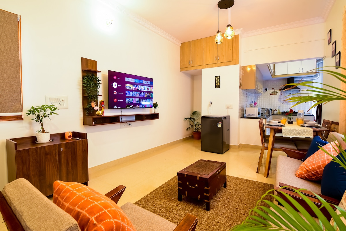 Xếp hạng trung bình 5/5, 4 đánh giáCăn hộ 1 phòng ngủ ấm cúng gần HBR, Manyta Tech, Hennur Cross