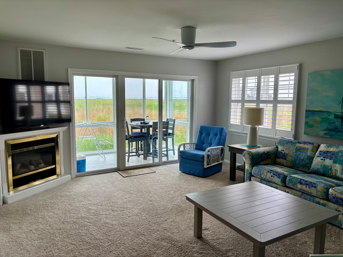 Unit 6302 at Bethany Bay is a 2 BR, 2 Bath, ground floor unit with panoramic views of the waterways and Indian River Bay. Sleeps 4. Free parking. Fully equipped kitchen, AC, fireplace, community outdoor pool, jogging/hiking path, 9 hole golf course. NON-SMOKING UNIT. Enjoy dinner and drinks on the enclosed rear porch and take in the view. 5 miles to Bethany Beach, 12 miles to Ocean City, 17 miles to Rehoboth Beach. I will allow one dog and the pet fee is $200.