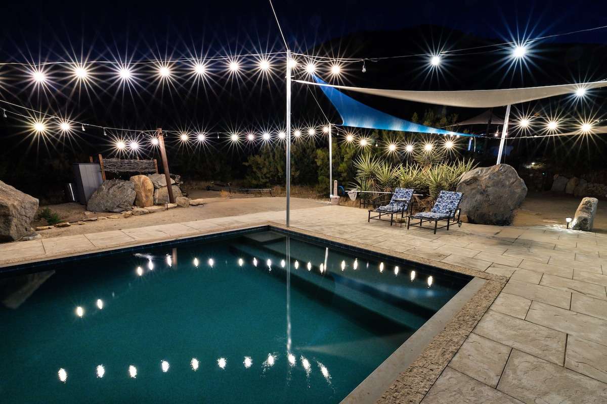 Chào mừng bạn đến với Hi Desert Onyx, một nơi nghỉ ngơi yên tĩnh trên sa mạc được thiết kế để sống chậm lại và kết nối lại. Nằm trên 2,5 mẫu Anh với hơn hai mươi cây Joshua, nơi ẩn náu yên bình này mời bạn thư giãn và nạp năng lượng. Ngắm bình minh trên núi, thư giãn trong bồn tắm nước nóng hoặc dành một buổi tối yên tĩnh ngắm sao dưới bầu trời sa mạc rộng mở. Hồ bơi cao bồi mở cửa quanh năm, hoàn hảo để làm mát trong cái nóng hoặc lặn xuống nước lạnh trong những tháng mát mẻ hơn.