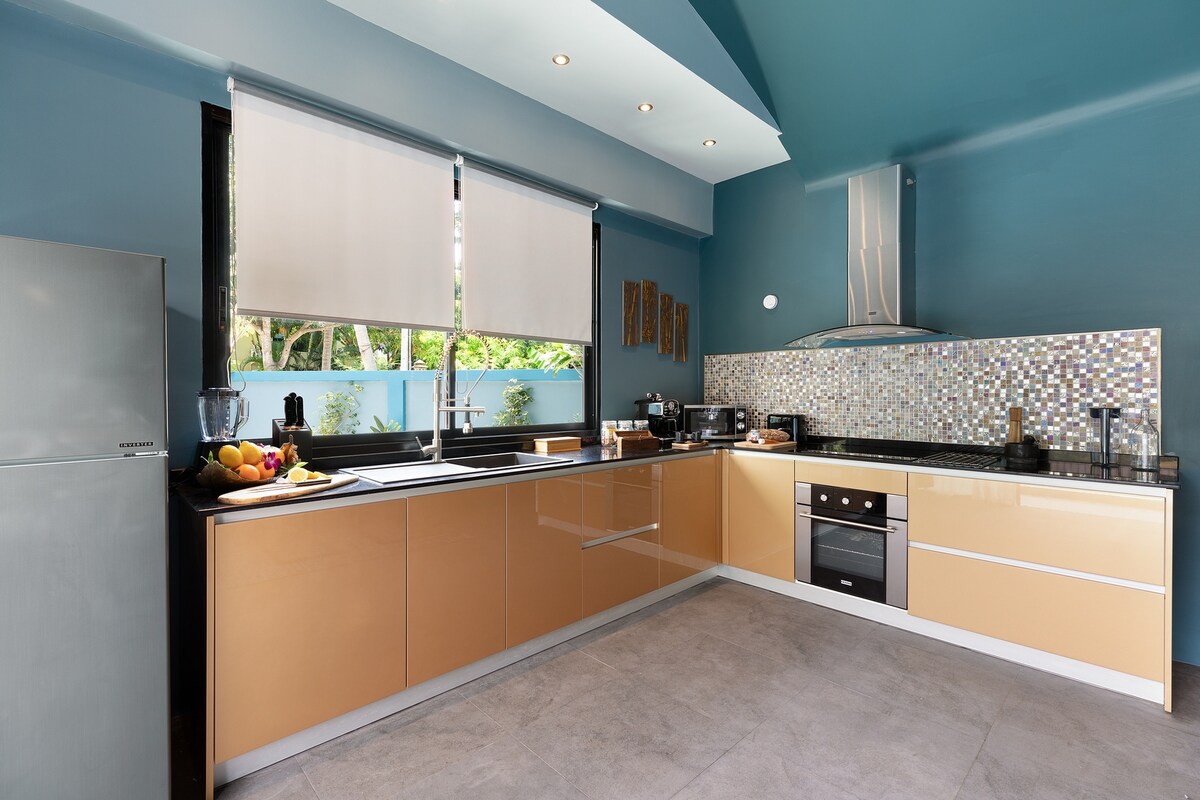 In the tropical south of Samui lies villa" Baan Suaan Kluay Mai"( Orchid garden).A modern 3 bedroom hide-away villa close by the sea with its own salt water pool.Just minutes walk from 3 beaches. All utilities included. Breakfast on request. Take a dip ,simply relax by the pool. Enjoy chilled drinks whilst sitting in the shade .A villa where you can truly get-away. Full modern kitchen.Don't like to cook?Thong Krut beach village is only 800 metres away, many cafes and restaurants.