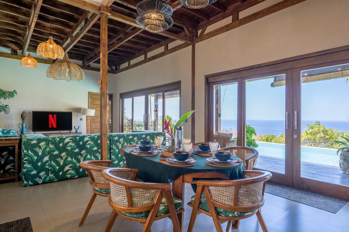 Biệt thự sinh thái đáng yêu này với cấu trúc tre tuyệt đẹp là một nơi trú ẩn lý tưởng khỏi tiếng ồn và sự phát triển đô thị và cung cấp một trong những nơi có tầm nhìn quang cảnh biển và hoàng hôn tuyệt vời nhất của miền Nam Lombok, Indonesia. Khoảng cách đi bộ đến bãi biển theo nghĩa đen và đến những địa điểm lướt sóng tốt nhất ở tất cả Nam Lombok, được bao quanh bởi rừng rừng và rất nhiều điểm tham quan ngoạn mục.