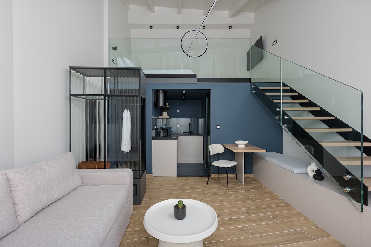 Βρίσκεται στο κέντρο των Ιωαννίνων, προσφέρει εντυπωσιακά, πλήρως εξοπλισμένα δωμάτια και διαμερίσματα που συνδυάζουν το industrial design με μια άκρως προσεγμένη και μεταμοντέρνα αισθητική.