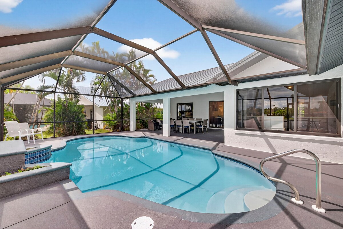 Tuyệt đẹp, được sửa sang lại 3 phòng tắm, 3 phòng tắm ở bờ biển Fort Myers. Mặt bằng sàn mở với 1400sf không gian sống, thêm 1500sf không gian ngoài trời (lanai được sàng lọc và hồ bơi nước nóng). Nhà bếp mơ ước quá khổ lớn để giải trí và nấu ăn. Mở tất cả các cánh cửa ra vào lanai! Nằm trên kênh nước mặn cách vùng nước mở và Vịnh Mexico vài phút. Các bãi biển cách Sanibel, Ft Myers và Cape Coral 15 phút. Cuộc sống về đêm, nhà hàng và các điểm tham quan địa phương gần đó. Ngủ tối đa 10 người. Chủ nhà: Ramses Meijer /WerkMagic