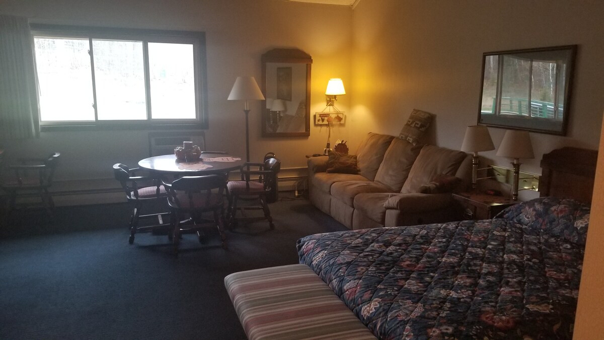Căn hộ chung cư đầy đủ với một giường queen trong phòng ngủ và kéo ghế sofa ra trong khu vực sinh hoạt. Có thể ngủ 4 một cách thoải mái. Bạn cũng có quyền sử dụng nhà bếp đầy đủ tiện nghi. Tận hưởng Snow River Ski Resort và những con đường mòn trượt tuyết chỉ cách chỗ ở vào mùa đông hoặc đi bộ đường dài trên những ngọn núi nhím và các hoạt động ngoài trời khác vào mùa hè! Chúng tôi vui lòng không yêu cầu thú cưng vào thời điểm này.