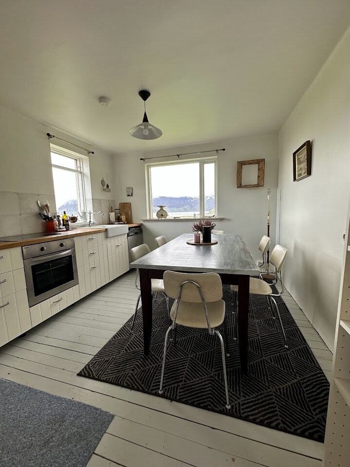Nhà riêng rộng rãi, vị trí tuyệt vời, tầm nhìn ra đại dương và bến cảng. Ở trung tâm Flateyri nhỏ thân thiện, cách Isafjordur 20 phút lái xe. Hai tầng, 4 phòng ngủ lớn, nhà bếp trần cao mở tuyệt vời - khu vực sinh hoạt và ăn uống, 2 phòng tắm với vòi sen và 1 bồn tắm. Vườn & sân thượng, bồn tắm nước nóng (mùa hè), lò nướng gas. Được tân trang lại bởi các chủ sở hữu, một vài gia đình chia sẻ tình yêu của ngôi làng Flateyri đẹp như tranh vẽ. Hoàn hảo cho 1-4 gia đình hoặc một nhóm nhỏ. Địa điểm hoàn hảo để khám phá Westfjords xa xôi kỳ diệu