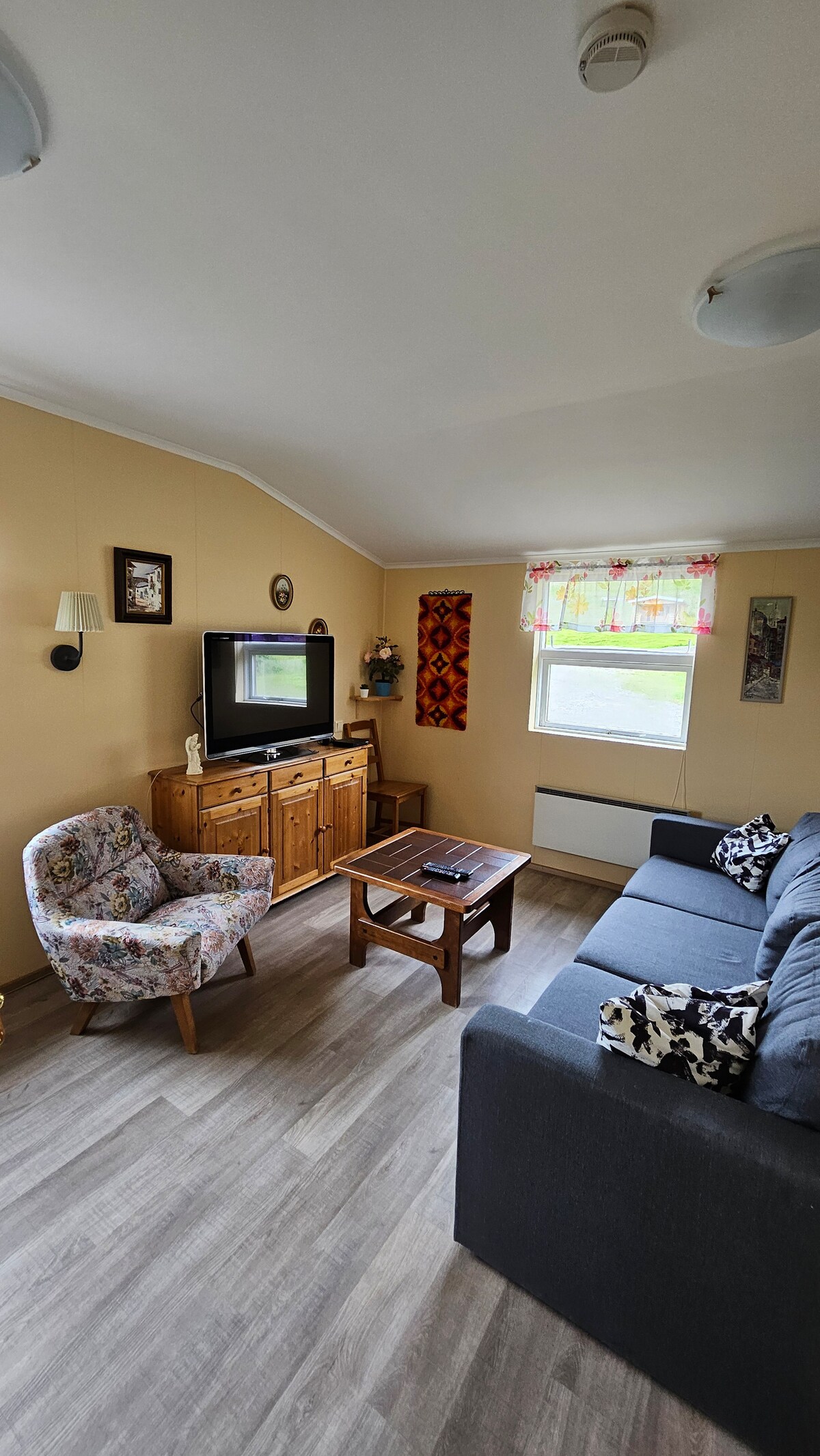 A small cozy cottage on the edge of a forest in the Westfjords, more specifically by Þingeyri Dýrafjörður. Here you can relax in unspoiled surroundings and enjoy nature in Brekkudalur. This small 25 sqm cottage is heated with a wood stove, water closet, cold running water, gas refrigerator and gas stove.