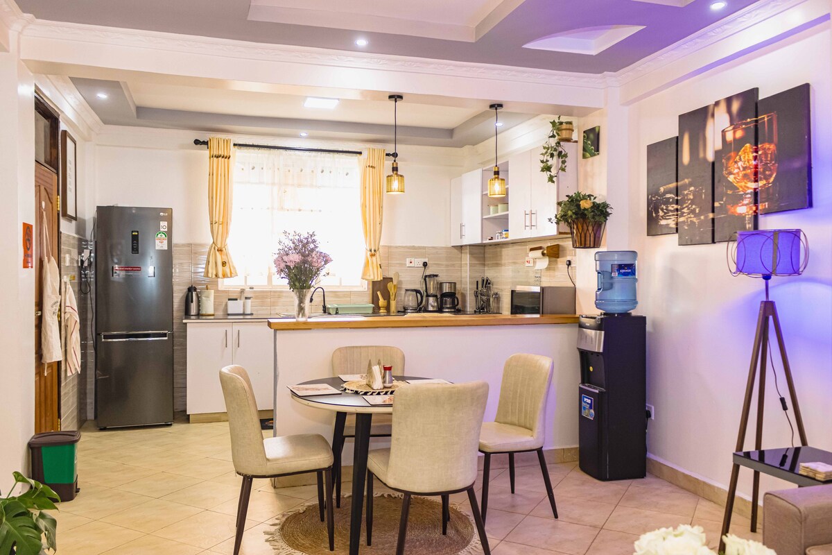 Căn hộ được trang bị nội thất hiện đại này sẽ mang đến cho bạn cảm giác như ở nhà, khách sạn vũ khí thể thao gần đó, nơi bạn có thể sử dụng hồ bơi,phòng xông hơi và Jacuzzi, By Grace cách tay thể thao khoảng 100mtrs và gần câu lạc bộ thể thao nanyuki, Có wifi và cáp dstv miễn phí