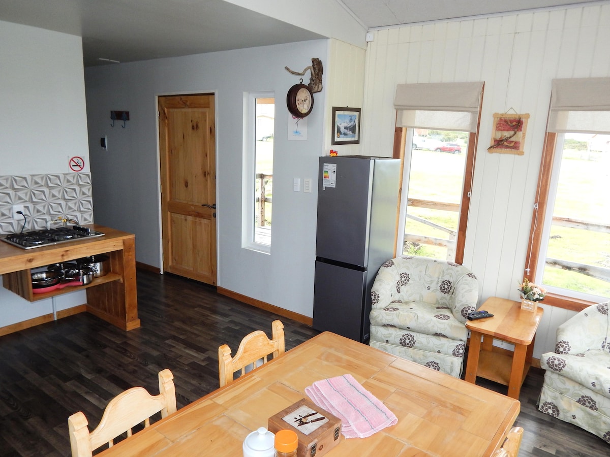 Cabin thoải mái, không gian rộng lớn nằm ở khu vực nông thôn ở lối vào của thành phố Puerto Natales, với tầm nhìn đặc quyền ra vịnh hẹp Ultima Esperanza, lý tưởng để thư giãn và nghỉ ngơi; hành khách sẽ tiếp xúc trực tiếp với Thiên nhiên và có thể thưởng thức vào mùa hè, trái cây đặc trưng của khu vực của chúng tôi, caulking, ngắm chim và động vật đặc trưng của khu vực. 5 phút lái xe và 30 phút đi bộ đến thành phố, với phong cảnh đẹp trong chuyến tham quan của bạn.