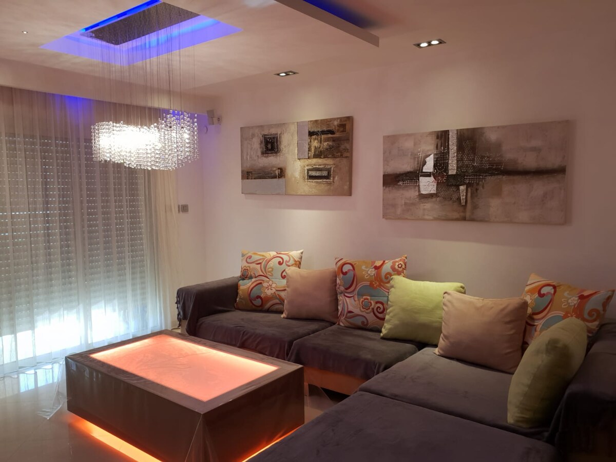 Căn hộ hai phòng ngủ được cải tạo đẹp và rộng rãi, nằm ở trung tâm Eilat chỉ cách bãi biển, trung tâm mua sắm và quán bar 15 phút đi bộ. Căn hộ được trang trí trang nhã với nhà bếp và thiết bị đầy đủ tiện nghi để hỗ trợ nhu cầu của bạn trong suốt thời gian lưu trú tại một ngôi nhà ở nơi xa. Tận hưởng ánh hoàng hôn tuyệt đẹp trên ban công rộng rãi với tầm nhìn ra biển và núi rộng mở, điều này sẽ làm bạn ngất ngây. Chúng tôi rất vui được đón tiếp bạn tại chỗ ở của chúng tôi!