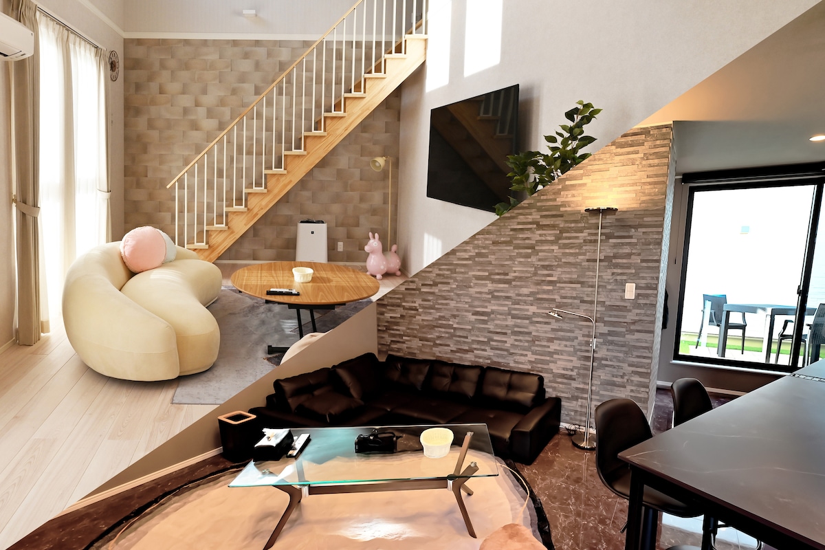 It is a new villa in Kujukurihama. Convenient to access from the center of the city, and it takes about 75 min by car. The spacious 3LDK room can accommodate up to 10 people, and the 669㎡ site offers a Pool, Sauna, BBQ, beautifully spacious garden. There are many seafood restaurants, CVS, supermarkets, and sightseeing spots around. It is a great place for travel and events between family and friends. You can bring your pet with you.