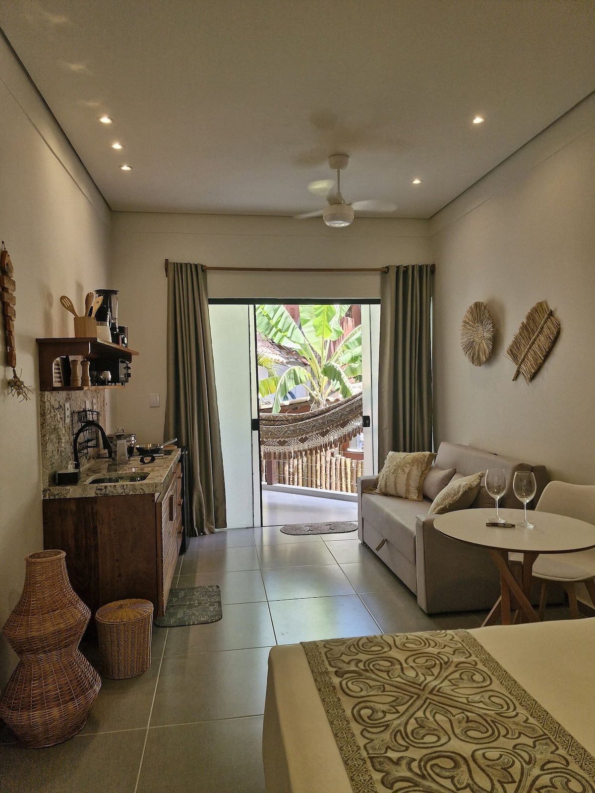 Đặt chỗ nghỉ dưỡng của bạn tại Itacaré! Trong một thiên đường nơi mặt trời chào tạm biệt đường chân trời và những con sóng thì thầm những câu chuyện cổ xưa, chúng tôi giới thiệu studio quyến rũ của mình, nằm ở vị trí chiến lược gần con phố sôi động của làng, được gọi là Pituba. Môi trường nhiệt đới: Khi vượt qua ngưỡng cửa, bạn được chào đón bởi một studio rộng rãi, một sự kết hợp hoàn hảo giữa hiện đại và mùa hè nhiệt đới. Với một giường đôi hấp dẫn và một giường sofa, đây là một nơi mà sự thoải mái đan xen với phong cách.