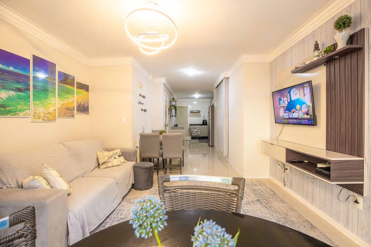Căn hộ cách bãi biển 3 phút, nội thất siêu mới và lắp ráp, hoàn chỉnh. Nó có tất cả các dụng cụ, bao gồm khăn tắm và chăn bông tiêu chuẩn rất cao. Giường đôi queen cộng với giường sofa chứa thêm 2 người lớn và thêm một trẻ em (lý tưởng cho gia đình) Điều gì tạo nên ~ Phòng tập thể dục ~ Nước nóng ~ Dịch vụ Elevador (1) ~ Social Elevador (3) ~ Không gian cho người sành ăn ~ Khí trung tâm Hành lang lối vào có đồ đạc ~ Bể bơi dành cho người lớn ~ HỒ BƠI NƯỚC NÓNG ~ Sân chơi ~ Cổng điện tử ~ Phòng chơi điện tử