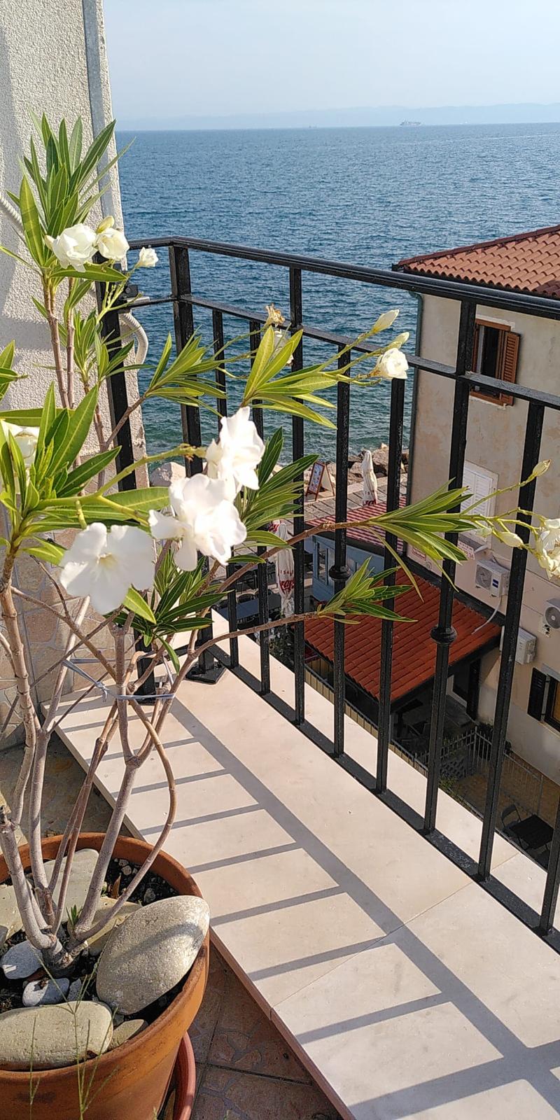 Do you want a spot on the sea, your apartment just steps from the Adriatic Sea? Want to relax in the beautiful garden with rich shadow, while your children play in the garden or swim in the sea in front of the house? Our apartment "Haliaetum" is located in a family villa by the sea, on the walkway to the San Simon beach in Izola. Excellent location, pleasant garden with Mediterranean vegetation, cozy apartment and our desire to feel at home with us, all these are sufficient reasons to spend your holidays, a long weekend or maybe just a day in our apartment Haliaetum all-year-round. The apartment is located in the middle floor (1st floor). It is suitable for up to 4 persons, centrally heated and air-conditioned. Fully furnished apartment includes: entrance with wardrobe, bathroom with shower and washing machine, living room with kitchen, dining table and 4 chairs, Led TV and a couch (130 x 190 cm) for two persons, bedroom with sea view and two beds We assure you that you will be excited about our extensive garden. In the shade of our pine trees, cypress and laurel bushes you will be delighted to use: table and 4 chairs, solid wooden deckchair along with sunbathing cushion and a folding deckchair, outdoor shower, fitness area among the cypress trees, swing on a pine, direct access from the garden to the beach, gas grill, free parking in front of the house, free Wi-Fi internet in the apartment and in the garden. Our house is certainly ideal also for families with children. Every moment you can "jump" in the apartment directly from the pebble beach without tiring walking or driving. Just park your car in front of the house and enjoy your vacation.