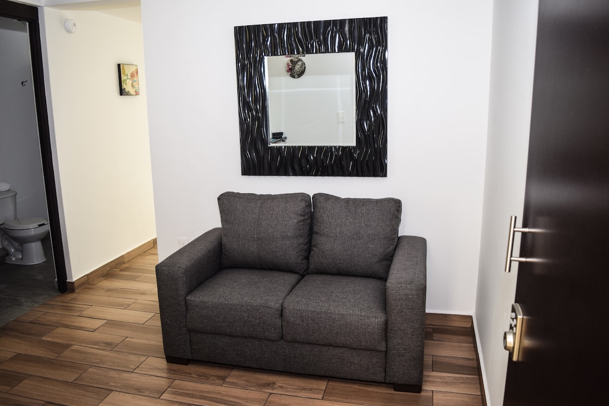 Minidepto, đơn giản và độc lập c/ tự động truy cập ở phía sau riêng tư của Plaza Explanada. Chúng tôi ở phía nam CD phía sau một đại lộ có giao thông, dễ dàng đến, bằng xe hơi 25 phút từ trung tâm, 15 phút đến Galerías, 2 đến lối ra CdMx và 5 đến lối ra Puebla. Gần đó có siêu thị, tiệm giặt ủi, đồ ăn, v.v. Caminando cách phương tiện giao thông công cộng 5 phút.