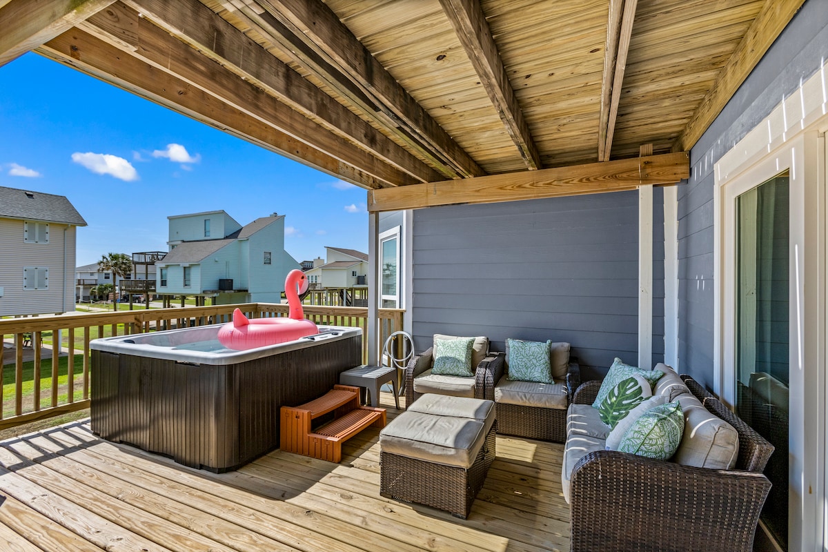 Welcome to my beautifully designed beach house on a secluded beach in Galveston, near Jamaica Beach! Kawakawa beach is the perfect place for a relaxing vacation with family and friends. The Honey Hole is stylishly decorated with warm coastal colors so you can truly decompress and create great memories. Enjoy the three new spacious decks and relax in new the hot tub while sipping cocktails as the sun goes down! Message me for early check in or late check out options when available.