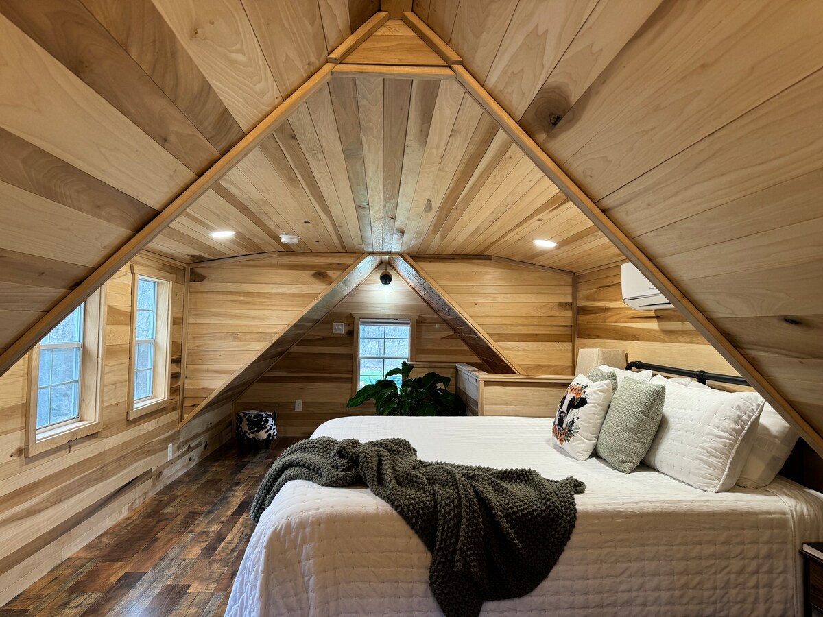 Bước ra khỏi hiên trước rộng rãi của bạn để đi dạo qua những vườn nho của Xưởng rượu Lovingston! Mang theo bạn bè của bạn và dành cuối tuần trong một cabin ấm cúng với các tiện nghi hiện đại trong vùng rượu vang Monticello nổi tiếng. Chỗ ở rộng 64 mẫu Anh này bao gồm cây sồi trước chiến tranh, tầm nhìn ra núi và một cái ao có rái cá! Chúng tôi khuyến khích bạn khám phá chỗ ở và thưởng thức một ly rượu vang Lovingston. Có khả năng bạn có thể được chào đón bởi một hoặc hai con ngựa nhỏ! Ngủ 6 người thoải mái, cũi trẻ em cho 7 người, tính thêm phí.
