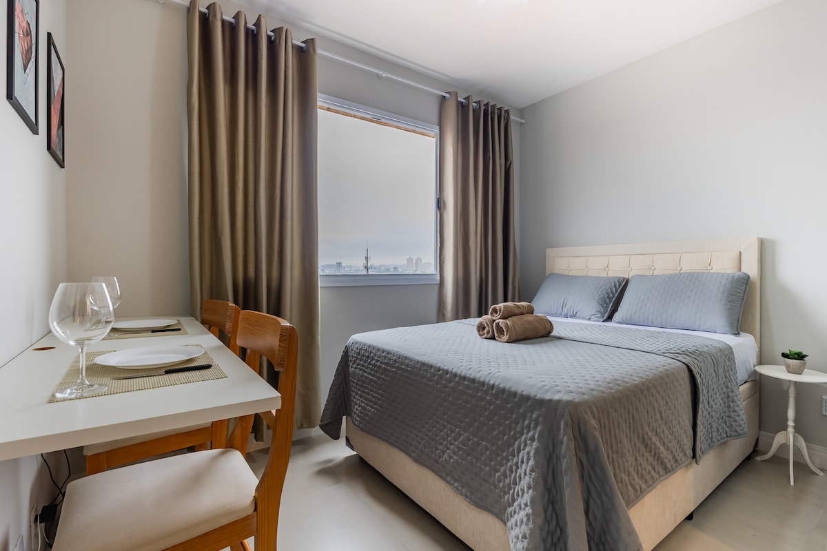 Studio ấm cúng và hoàn chỉnh, chỉ cách Guilhermina Metro vài bước chân và chỉ cách Neo Química Arena vài phút. Không gian lý tưởng cho tối đa 2 người, với giường đôi thoải mái, bếp được trang bị đầy đủ tiện nghi, phòng tắm và khu vực làm việc với Wi-Fi nhanh cho những người cần làm việc từ xa. Chỗ ở sạch sẽ, đủ ánh sáng, an toàn và yên tĩnh, lý tưởng cho du khách, sinh viên hoặc các chuyên gia đang di chuyển qua SP, dễ dàng đến Centro/ZL. Bao gồm: ga trải giường, khăn tắm, wi-fi, TV thông minh với Roku TV.