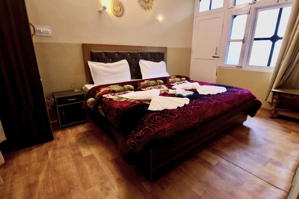 Phòng Suite Duplex siêu ấm cúng CÓ CỬA SỔ để ngắm cảnh núi. Một phòng ngủ ở tầng dưới với một phòng tắm và cầu thang gỗ đến phòng ngủ tầng trên. nó có một bộ ghế sofa ở tầng trên, nơi 4-5 khách có thể ngồi và thưởng thức đồ ăn. BAO GỒM TRONG PHÒNG: - Nước khoáng khi đến nơi - Wifi, bãi đỗ xe miễn phí Bữa sáng miễn phí (8:30 sáng đến 10:30 sáng) chỉ được phục vụ tại khu vực ăn uống (Không có dịch vụ phòng) - Máy sưởi với phụ phí 300/- rs Phòng ở tầng 3 Lưu ý *Không có thang máy*
