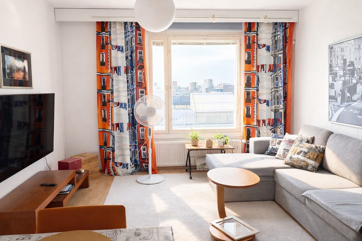 Wake up in this central Helsinki home with city & park views and a huge balcony — slow Nordic mornings, fresh air and long summer sunsets to complete your true Nordic experience. Top rated restaurants and a 24/7 grocery are steps away. Gym access + free parking for ease. ✔ Well-equipped kitchen ✔ Flexible check-in ✔ Gym access ✔ EV-charging ✔ Fast WiFi · Disney+ & PS4 ➟ 4 tram lines ⌘ 12 min to Central Station 🛳 Tallinn ferry 400m 🏷 Grocery 60m/24/7 🍽 Restaurants & cafés 🛝 Parks ⛸ Ice rink