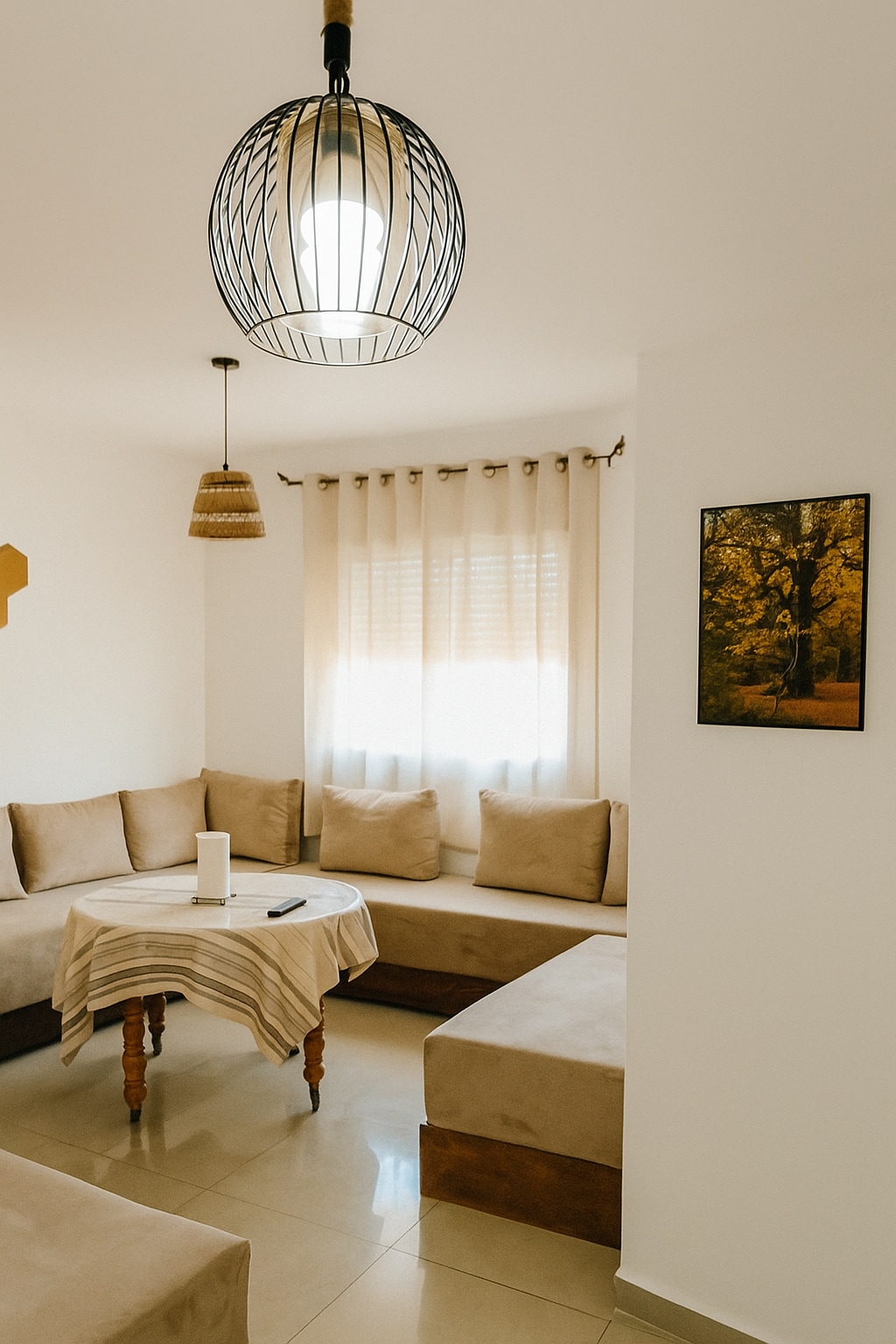 Modern and comfortable apartment just 2 minutes from the beach, 5 minutes from Tangier airport and 20 from the city center by car. Ideal for families or couples, it features fast Wi-Fi, a full kitchen, parking and self check-in. Located in a quiet area, perfect for relaxing after exploring Tangier, Asilah and the coast. Ideal for beach holidays, short stays or remote work in a peaceful setting