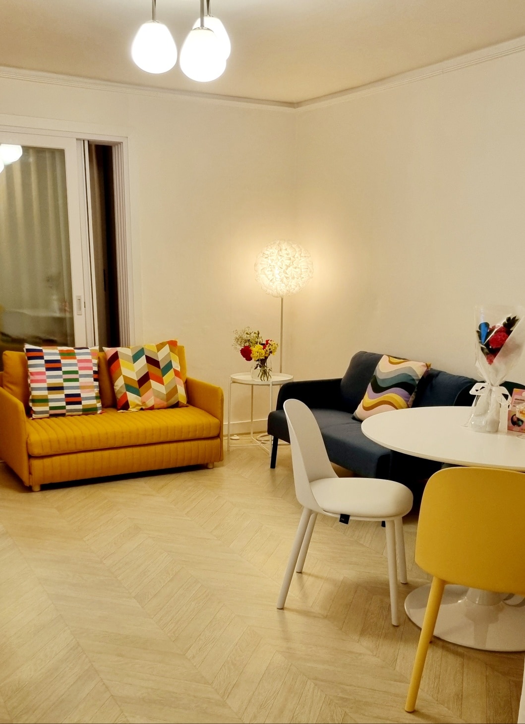 평온하고, 아늑한 숙소에서 온 가족이 함께 휴식 시간을 가져보세요. 내집처럼 편안한 공간 상위1% 숙소를 운영하는 호스트가 직접 관리하는 곳으로 여행, 출장 그 어떤 목적에도 편안한 휴식을 드립니다. 정수기와 비데가 있어서 더욱 편안히 지내실 수 있으세요. 슈퍼싱글 침대 3개, 쇼파베드 1개. 방1 : 슈퍼싱글 베드 2개 방2 : 슈퍼싱글 베드 1개 방 겸 거실 : 쇼파베드 2인 : 방1 + 거실세팅. 3인 : 방1 +방2 세팅 4인 : 방1 + 방2 + 거실 세팅. (특별한 요청 사항이 없으실 경우 위의 조건으로 준비 됩니다.) 단기임대 가능하세요. 단기임대는 기간별 특별 할인 해 드려요. 도보 5분 이내 거리에 마트, 편의점, 스타벅스, 식당, 병원, 약국 이 모두 있어 지내시기 편하고 배달 가능지역으로 음식 주문하시기도 좋아요~