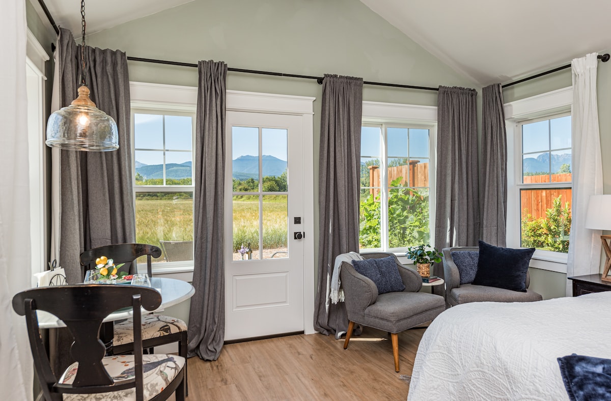Làm trẻ hóa tâm hồn của bạn trong ngôi nhà nghỉ thôn dã sang trọng riêng trên vùng đất nông nghiệp yên tĩnh với tầm nhìn ra núi ngoạn mục và internet tốc độ cao. Chỉ cách trung tâm thành phố Sequim 10 phút, với các cửa hàng quyến rũ và ẩm thực ngon, nơi có rất nhiều trang trại hoa oải hương. Liền kề với đường mòn xe đạp và gần Công viên quốc gia Olympic. Tầm nhìn ra máy bay rất nhiều từ Sân bay Sequim Valley gần đó! LƯU Ý: Máy giặt và máy sấy được cung cấp theo yêu cầu trước cho thời gian ở từ 3 đêm trở lên =0)