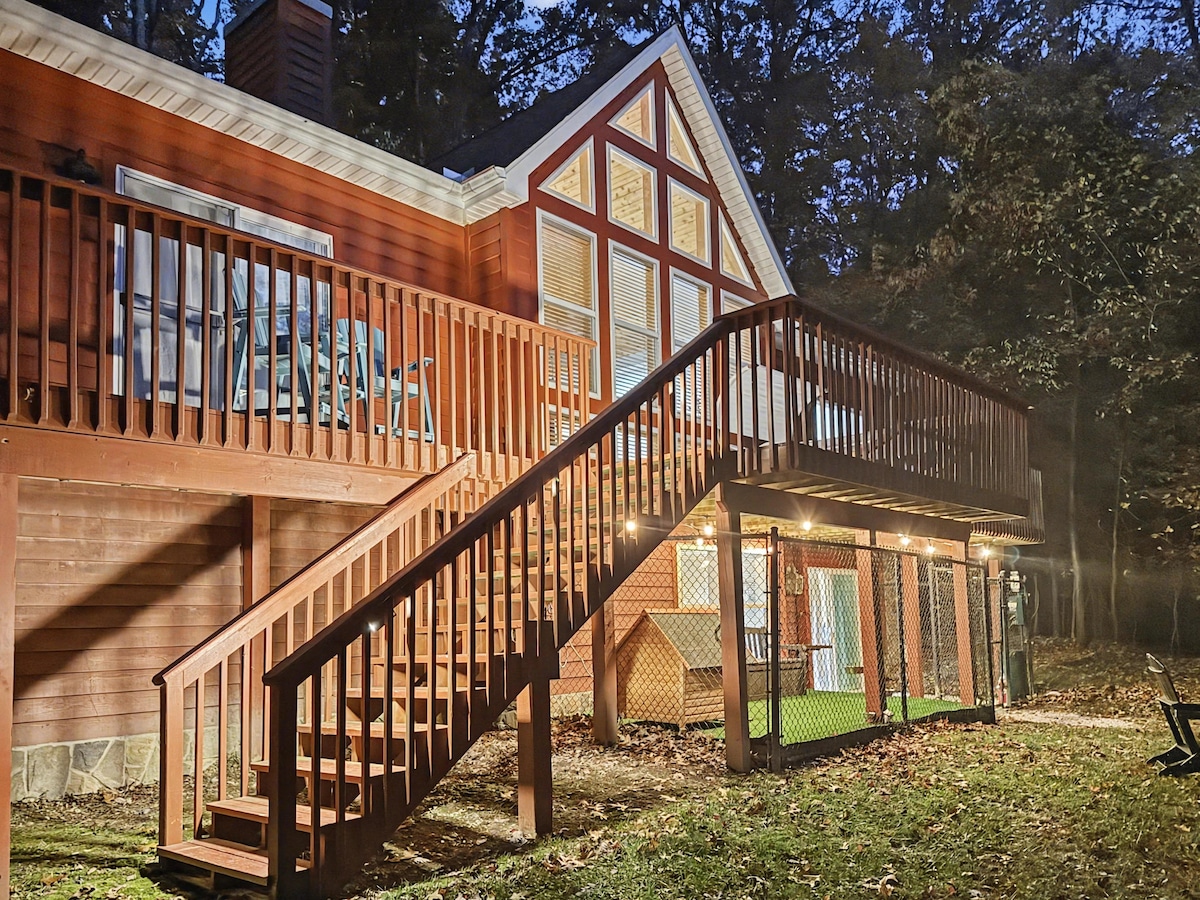 Hãy tưởng tượng bạn thức dậy với âm thanh nhẹ nhàng của một dòng suối bập bẹ khi ánh sáng mặt trời chiếu xuyên qua những tán cây. Lối thoát trên núi của bạn đang chờ đón bạn! Cabin quyến rũ, thân thiện với thú cưng này mang đến sự pha trộn hoàn hảo giữa sự thoải mái và phiêu lưu. Thư giãn trong bồn tắm nước nóng, nướng kẹo dẻo bên một trong nhiều hố lửa hoặc bắt đầu đi bộ đường dài qua những con đường mòn riêng của chúng tôi. Tận hưởng các tiện nghi hiện đại, bao gồm phòng chiếu phim và trò chơi điện tử, với nét quyến rũ mộc mạc. Đây là căn nhà của bạn để khám phá vẻ đẹp của Tây Virginia.