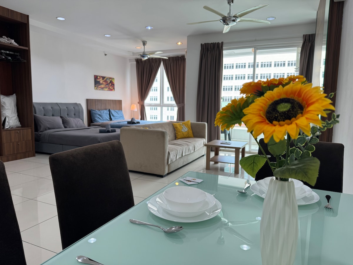 Gia đình bạn sẽ gần với mọi thứ khi bạn ở tại địa điểm nằm ở trung tâm Georgetown này. Đây là một tòa nhà hoàn toàn mới với các tiện nghi trên bầu trời như hồ bơi vô cực, phòng tập thể dục trên không, phòng chờ trên bầu trời, v.v. Ngoài ra, hãy tận hưởng khung cảnh ngoạn mục của George Town trên đảo Penang. Vị trí chiến lược với các quầy hàng bán hàng rong/nhà hàng bán hàng rong gần đó, nhấn mạnh vào sự an toàn và an ninh cho trải nghiệm du lịch của bạn. Chúng tôi cung cấp sự sắp xếp cho dịch vụ đưa đón sân bay và dịch vụ du lịch riêng. Áp dụng T&C.